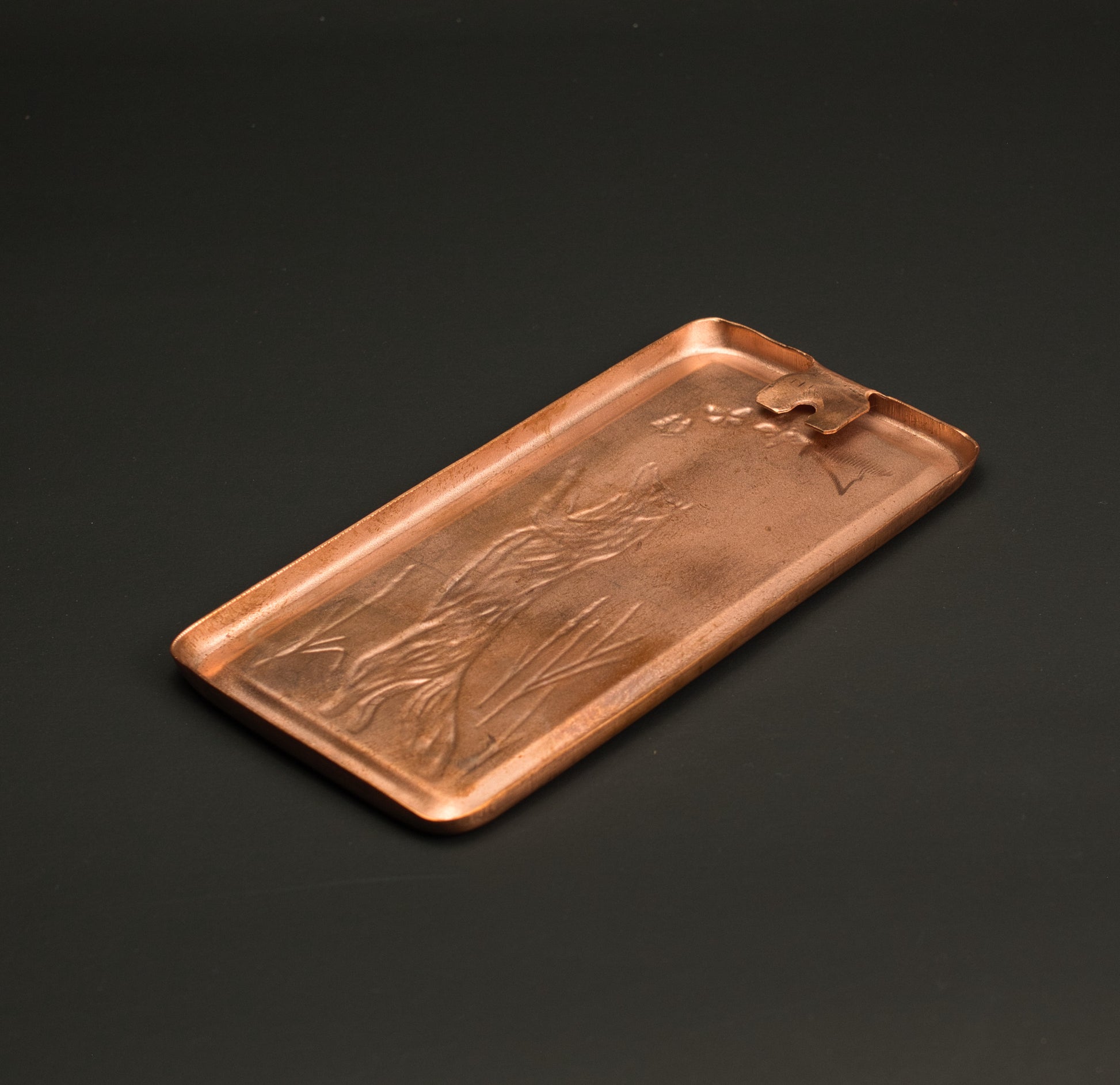 This 100% copper, handmade tile includes a built-in hanger so it can be hung directly on the wall. Or display it in one of Monte's easels, which can be purchased on this site.
