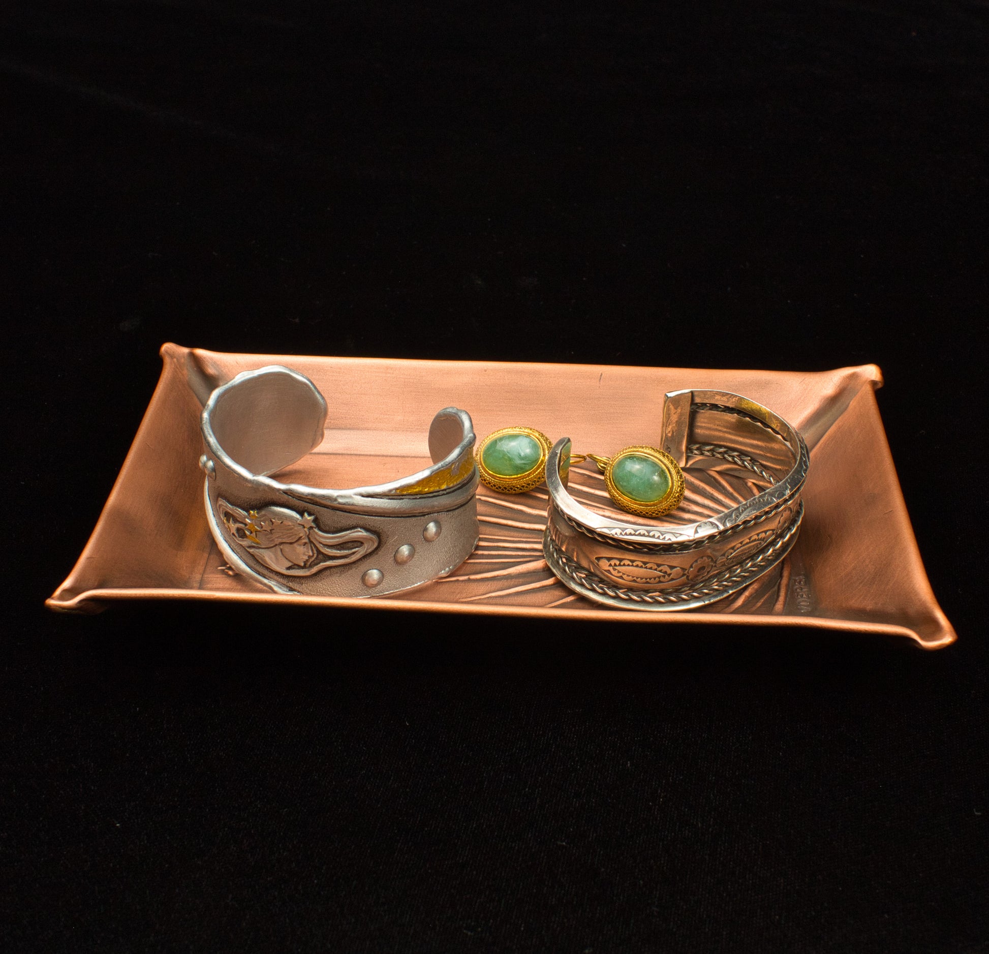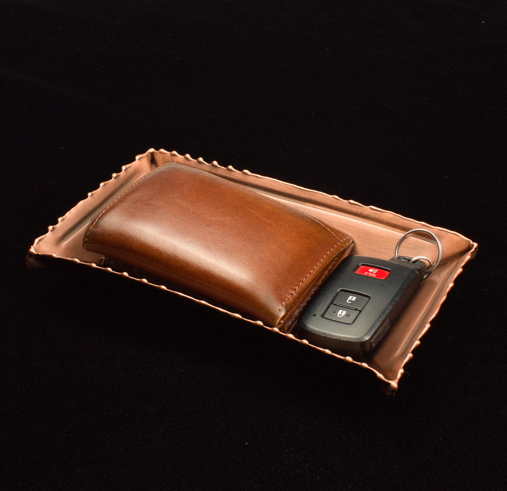 This valet tray is 3/4" deep, making them ideal for placing rings, watch, earrings, wallet, etc. Expertly crafted from 100% copper.