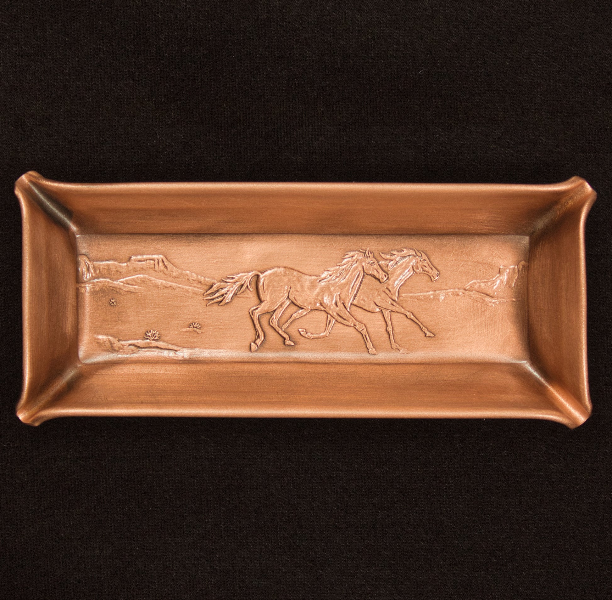 This versatile little tray can be used for rings or as a general catchall with a depth of 1/2". Handmade from 100% copper. There are small pads on the back to protect your furniture. What a lovely, unique gift!