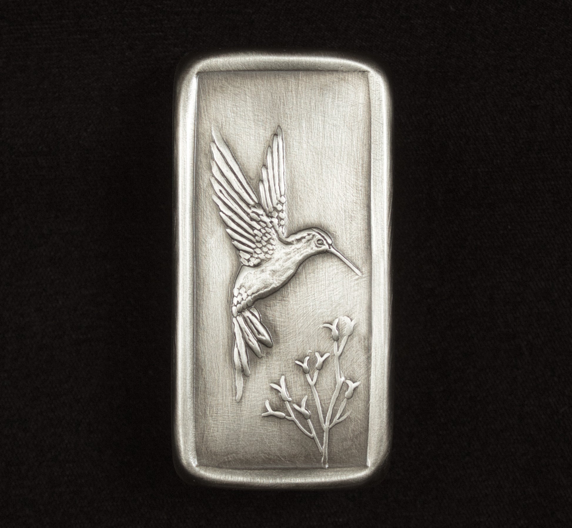 Hummingbird Cabinet Pull, Nickel/Silver, Facing Right, 1.5" x 3"